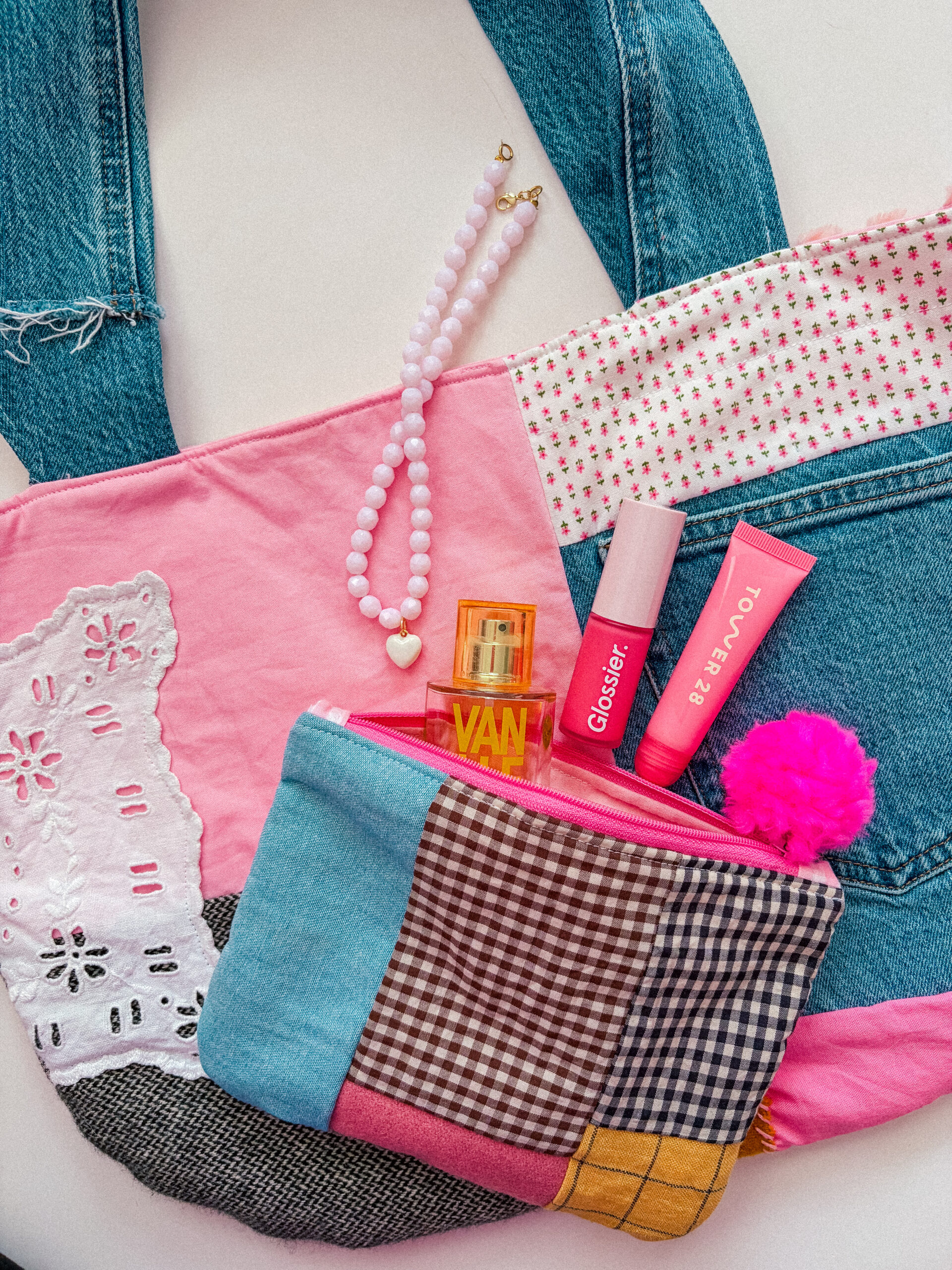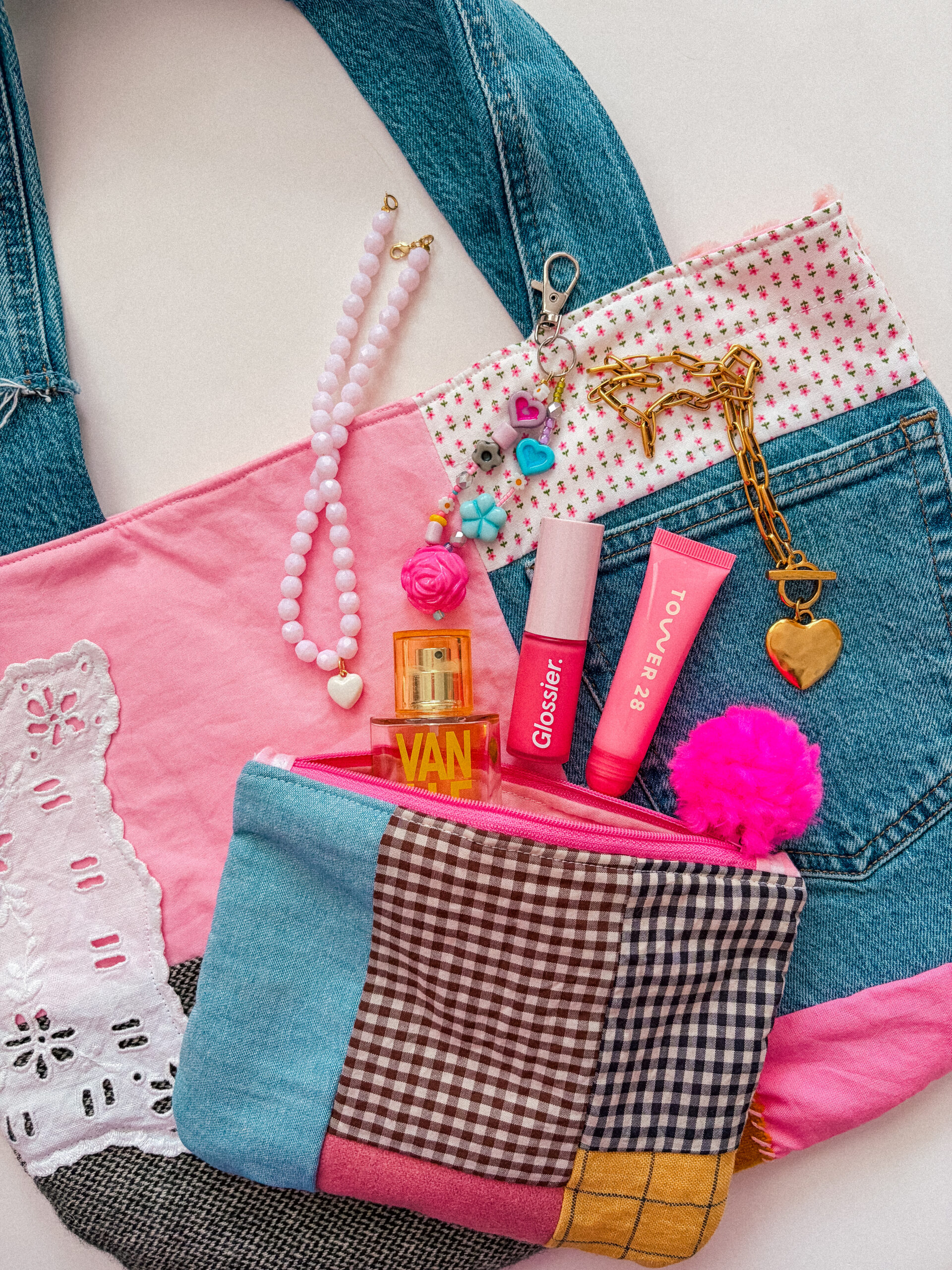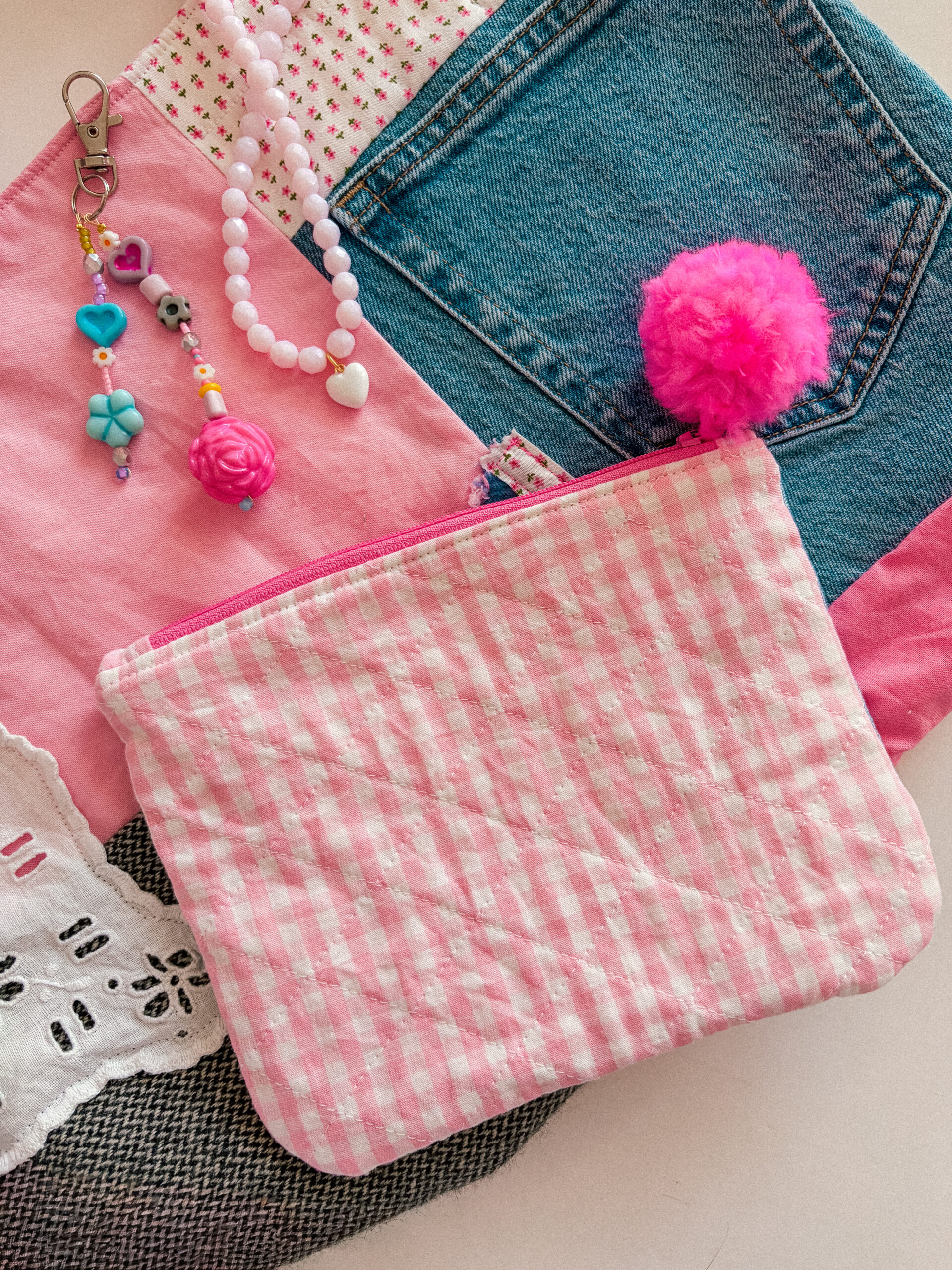 The patchwork zipper bag is a statement piece for your essentials. Made from a mix of vintage, upcycled, and new fabrics, each bag is unique. Its patchwork design adds texture and charm, while the zipper keeps everything secure. Perfect for makeup, trinkets, or everyday small essentials.